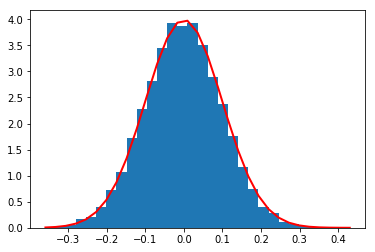 count, bins, ignored = plt.hist(s, 30, normed=True)