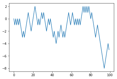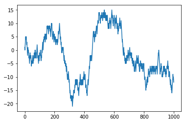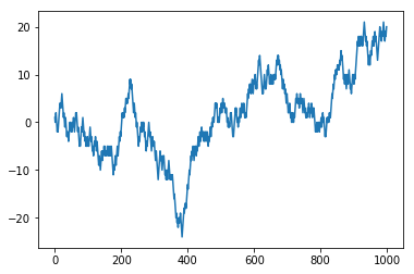 walk = steps.cumsum();#print(walk) # numpy.cumsum(a, axis=None, dtype=None, out=None)[source]