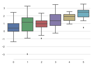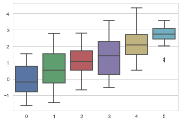 data = np.random.normal(size=(20, 6)) + np.arange(6) / 2