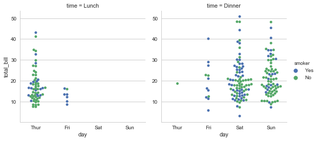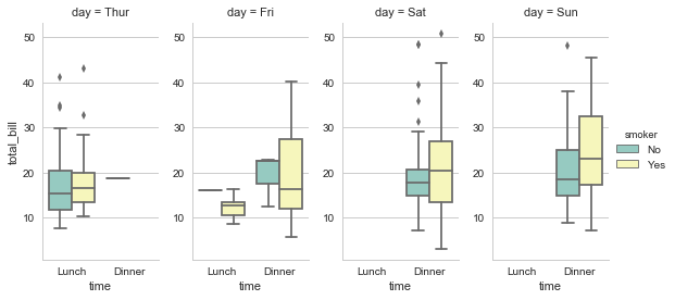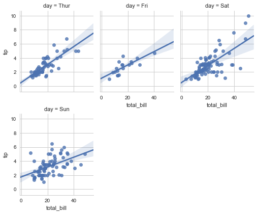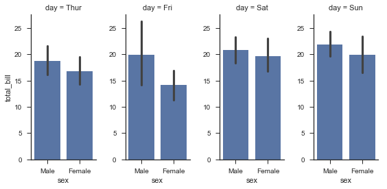 g = sns.FacetGrid(tips, col="day", size=4, aspect=.5)