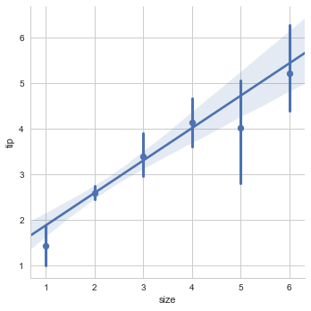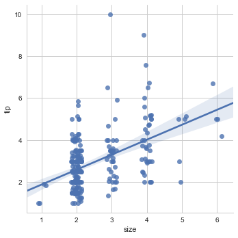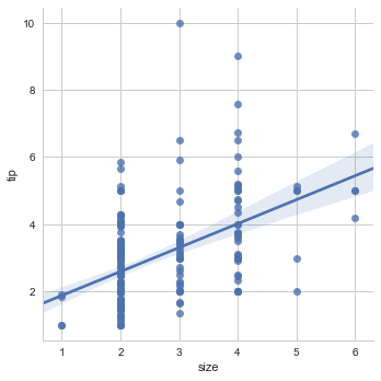 g.map(sns.regplot,"size","total_bill",x_jitter=0.1)