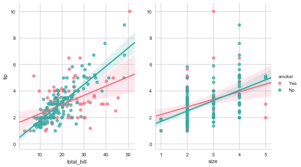 g = sns.PairGrid(tips, y_vars=["total_bill", "size"],