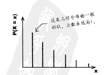 几何分布的图像是一个x轴为r,y轴为P的递减曲线,其一个特点是:任何几何分布的众数都永远是1。因为可能性最大的情况始终是:仅尝试一次即可获得成功。