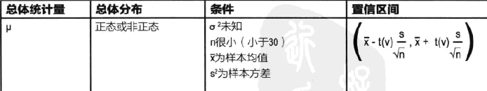 T ~ t(v)而T的计算方法和之前的X拔一样,T = (X拔 - μ)/((s^2/n)^0.5)。区别是,对于t分布,默认使用样本方差代替总体方差,因此直接使用s而不是σ。t分布概率表需要自由度和尾部概率值,就可以求得t(v)值,之后代入求μ的置信区间即可。
