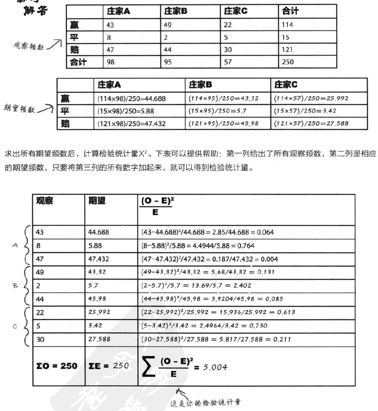 如上所示,O表示观测值,E表示期望值,卡方大到一定程度之后,我们认为其超过了合理偶然性的范围。