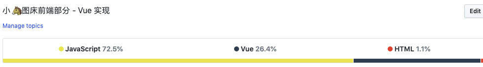 72%的 JavaScript,26% 的 Vue,1.1% 的 HTML。具体而言,前端使用了 Vue View FrameWork,Element UI Library(饿了么),以及一个叫做 Clipboard 的用于自动粘贴内容到剪贴板的小工具。